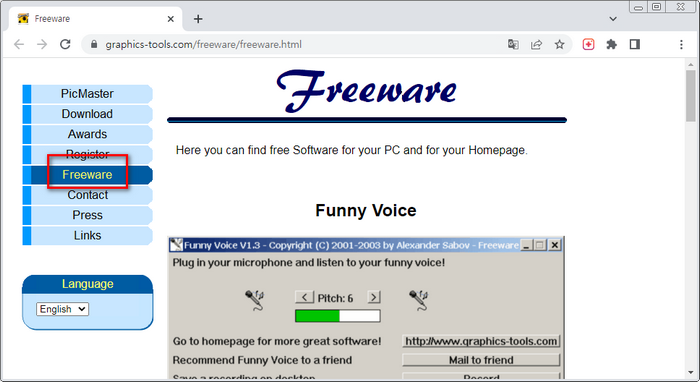 Here you can find free Software for your PC and for your Homepage. Funny Voice System:Windows "Funny Voice" changes the pitch of your voice. Higher pitch will let you sound like a smurf, less pitch will give you a deep voice. All you need is a mic