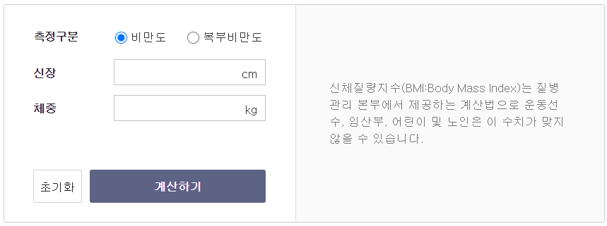실제로 많이들 찾는 것이 신체질량지수라고 불리는 BMI계산법인데요. 개인적으로는 복부비만률을 더 우선으로 여깁니다. 아무리 저체중이나 과체중이라도 체질량에 따라서 건강함과 비만으로 나뉠수 있으니 말입니다.